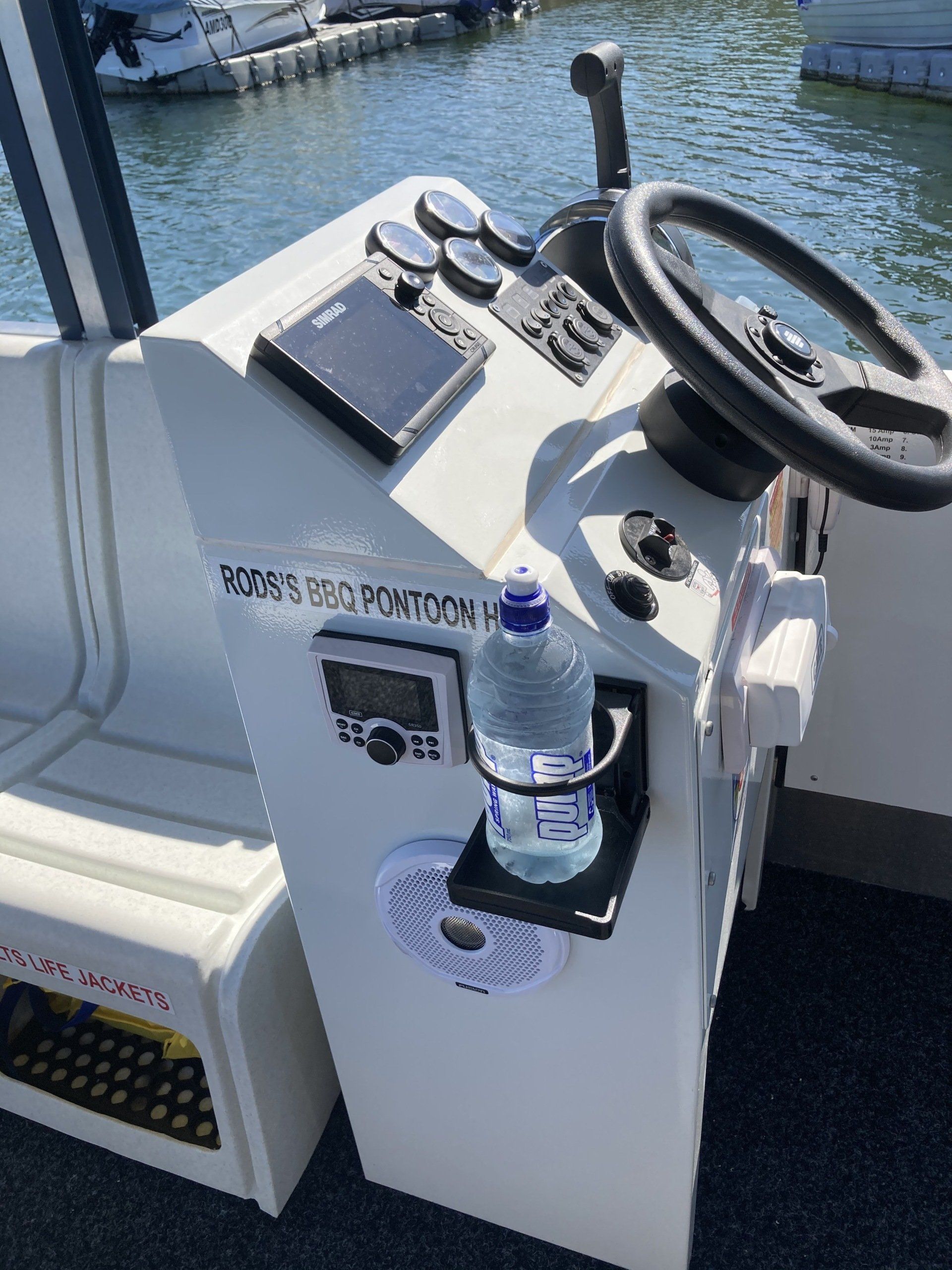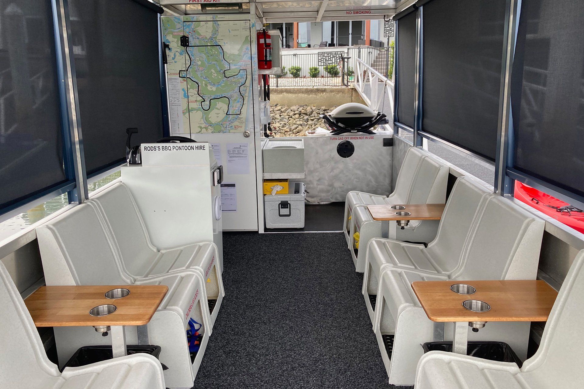 Rod's BBQ Pontoon boat is a self drive boat that requires no licence and can carry up to 10 people.